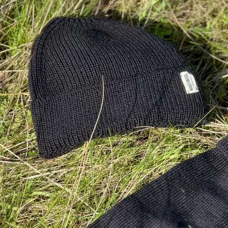 Jet Black British Wool Beanie Hat