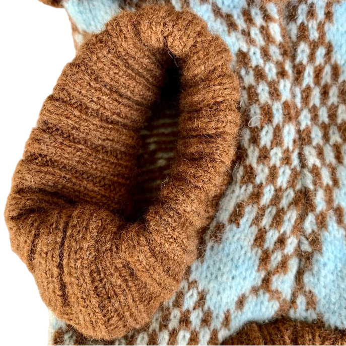 The lambswool we use comes from a Yorkshire company that’s been around for more than 200 years. Dedicated to spinning the finest natural raw materials into the highest quality yarns, you can trust that our sustainable matching dog sets will stand the test of time. In fact, if you follow our guidance, your pet and owner matching outfits can last a dog’s lifetime!