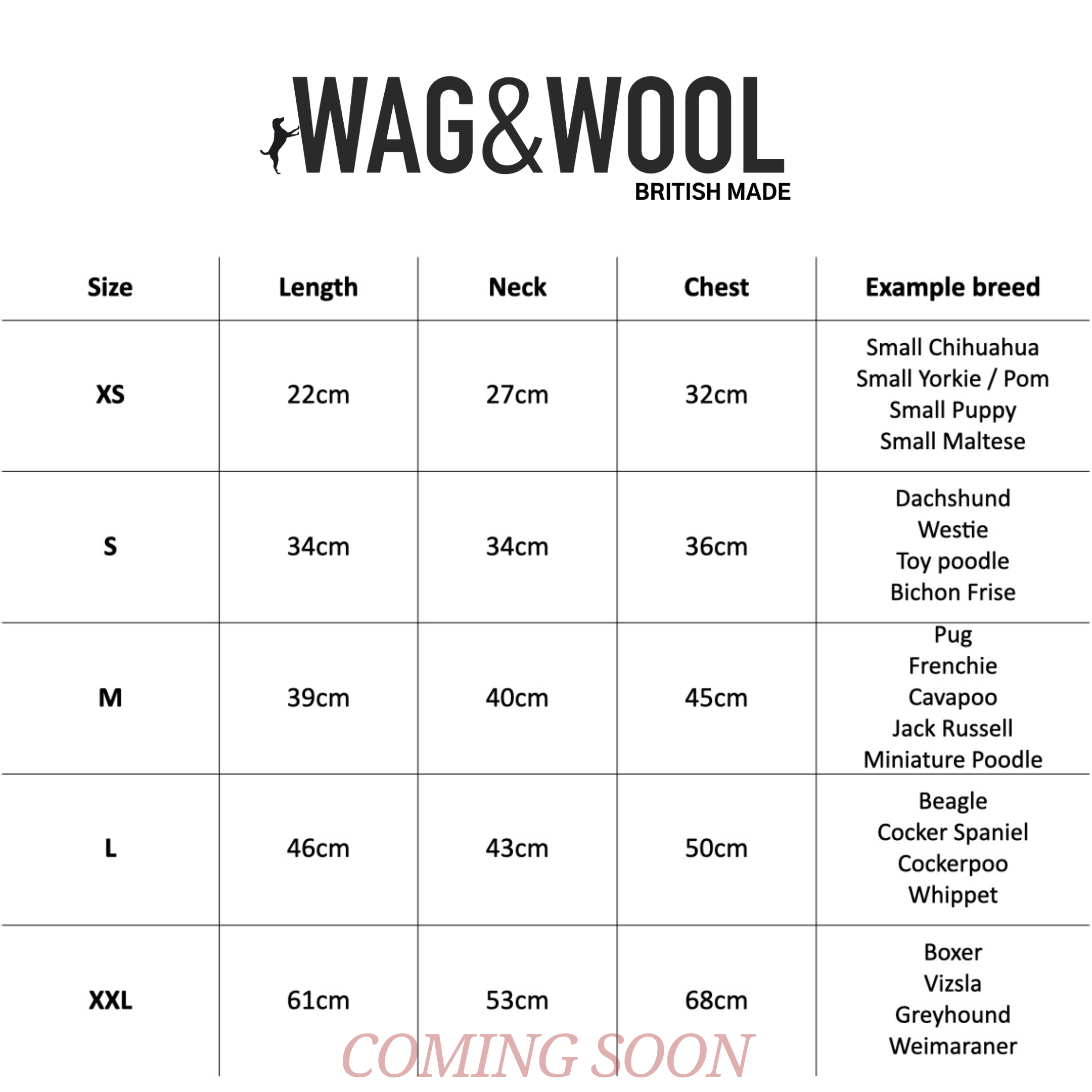 If for any reason you require an exchange, please email us at info@wagandwool.co.uk and we can arrange this for you.
